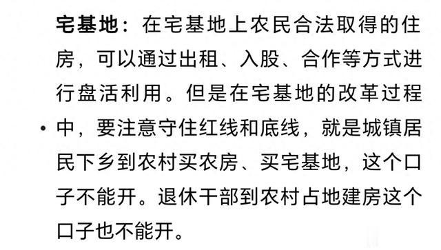 2025年中央一号文件讲得非常明白:城镇居民下乡到农村买农房,买宅基地,这个口子不能开。退休干部到农村占地建房这个口子也不能开。